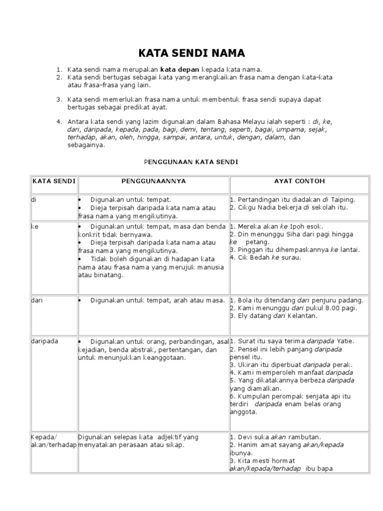 Kata Sendi Nama Dan Contoh Contoh Ayat